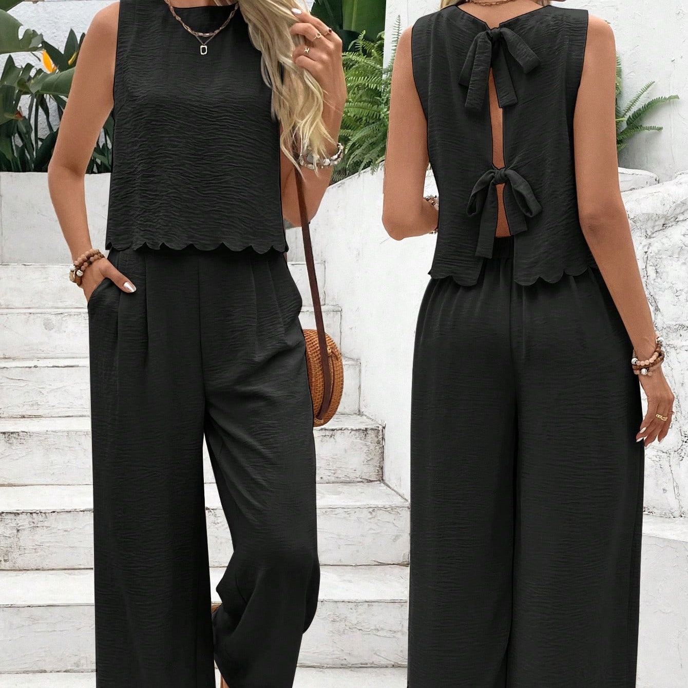 Women's Summer Muscle Simple Everyday Old Money Style Linen Tie Two Piece Set